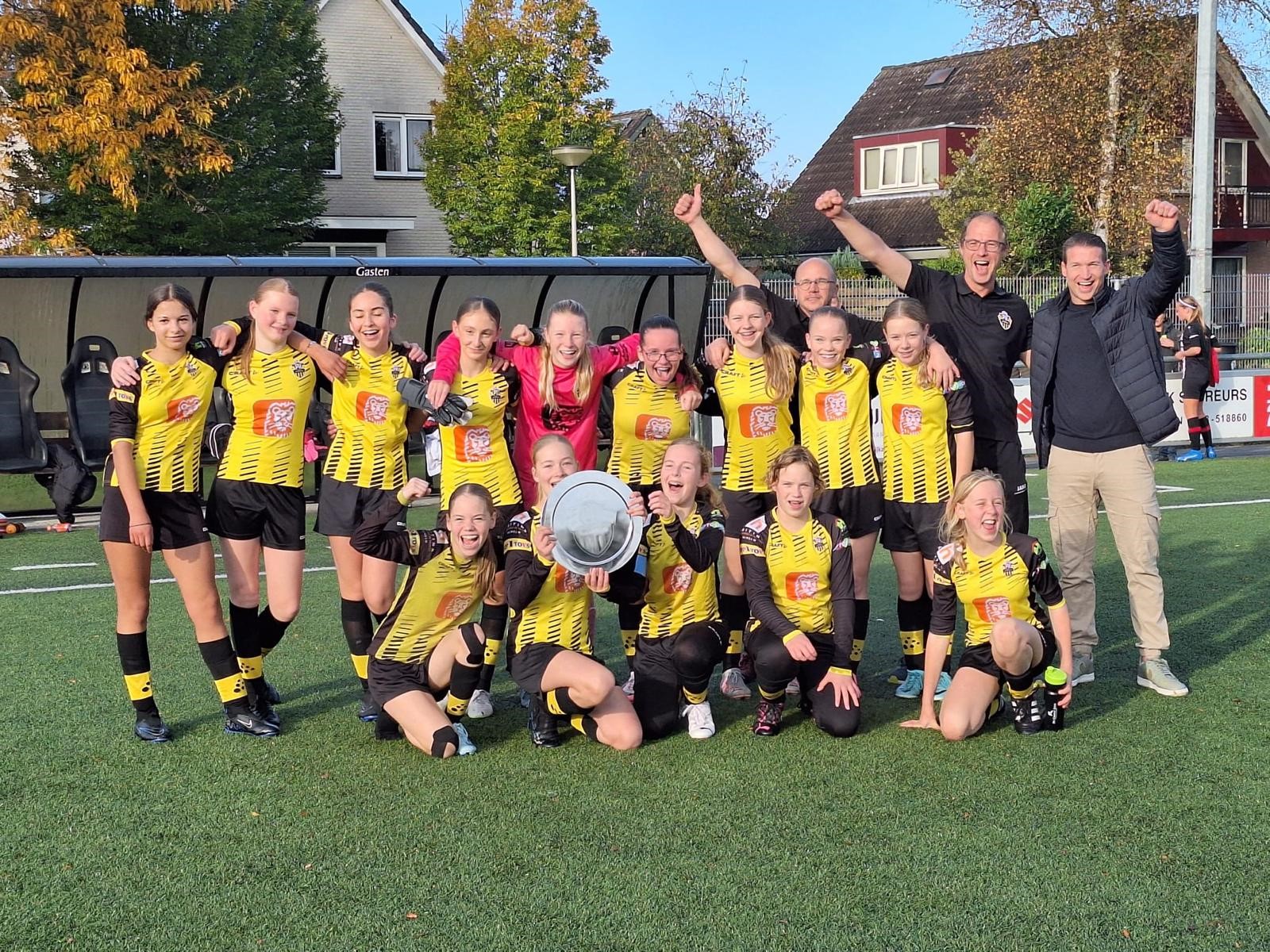 Een speciale shout-out voor MO13-1, dat het kampioenschap binnensleepte dankzij een zwaarbevochten 0-1 overwinning bij SV Enter. Tijdens het toernooi werden de speelsters als echte heldinnen onthaald! Meer hierover in onderstaand wedstrijdverslag.