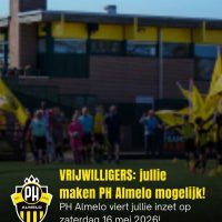 Met MEGA veel trots willen we alle vrijwilligers van PH Almelo, die het voetballen bij deze fantastische club mogelijk maken, ontzettend bedanken! Op zaterdag 16 mei 2026 drukken we die dankbaarheid uit in een feestavond speciaal voor jullie! Zet 'm alvast in je agenda.