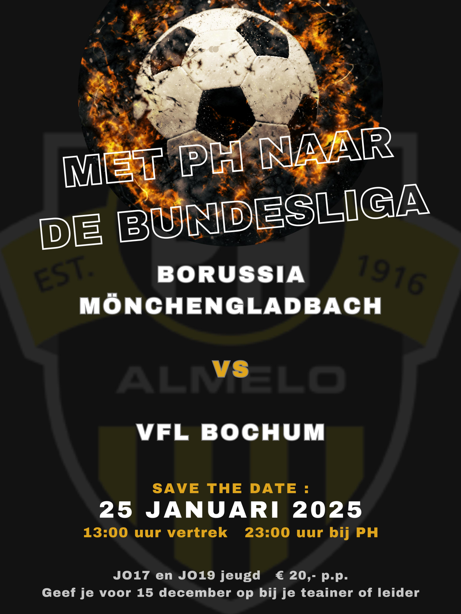De bus voor het geweldige Bundesliga-uitje op 25 januari raakt snel vol! Er zijn nog maar 5 plekken beschikbaar, dus geef je snel op via je trainers. Let op: vol = vol!